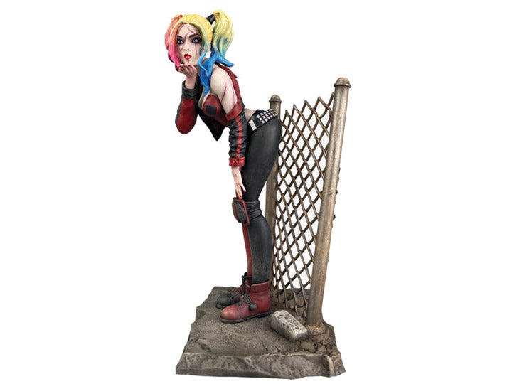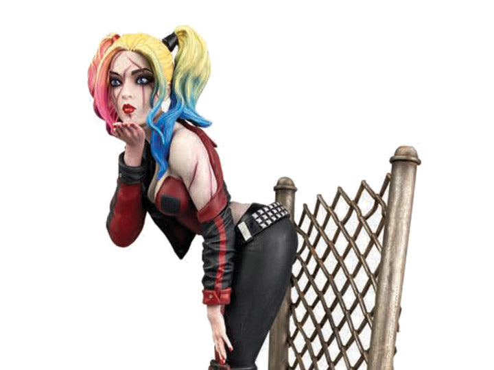 Death becomes Harley! The DC Comics liveliest villain has survived the zombie outbreak all while keeping her signature attitude. Blowing a kiss with her face covered with scars, she strikes a pose by a chain-link fence in this approximately 8" sculpture. Cast in high-quality PVC, it features detailed sculpting and paint applications and comes packaged in a full-color window box. Sculpted by Sam Greenwell.