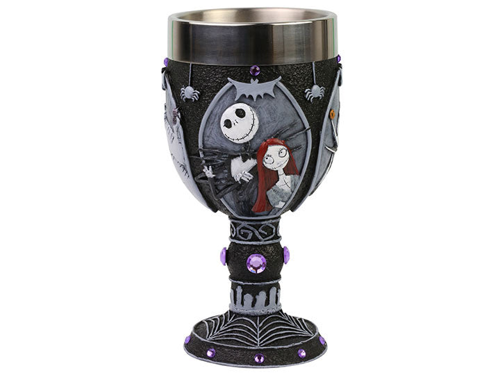 Celebrate your holidays in style with the official chalice of Halloween Town! This stainelss steel lined decoratve goblet is a must-have for all of The Nightmare Before Christmas fans. 16 faux gems placed around the goblet make it sparkle in the moonlight.