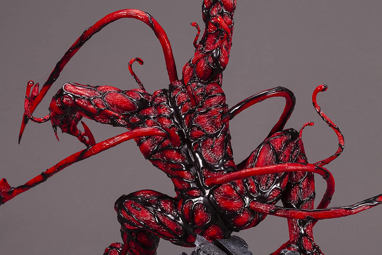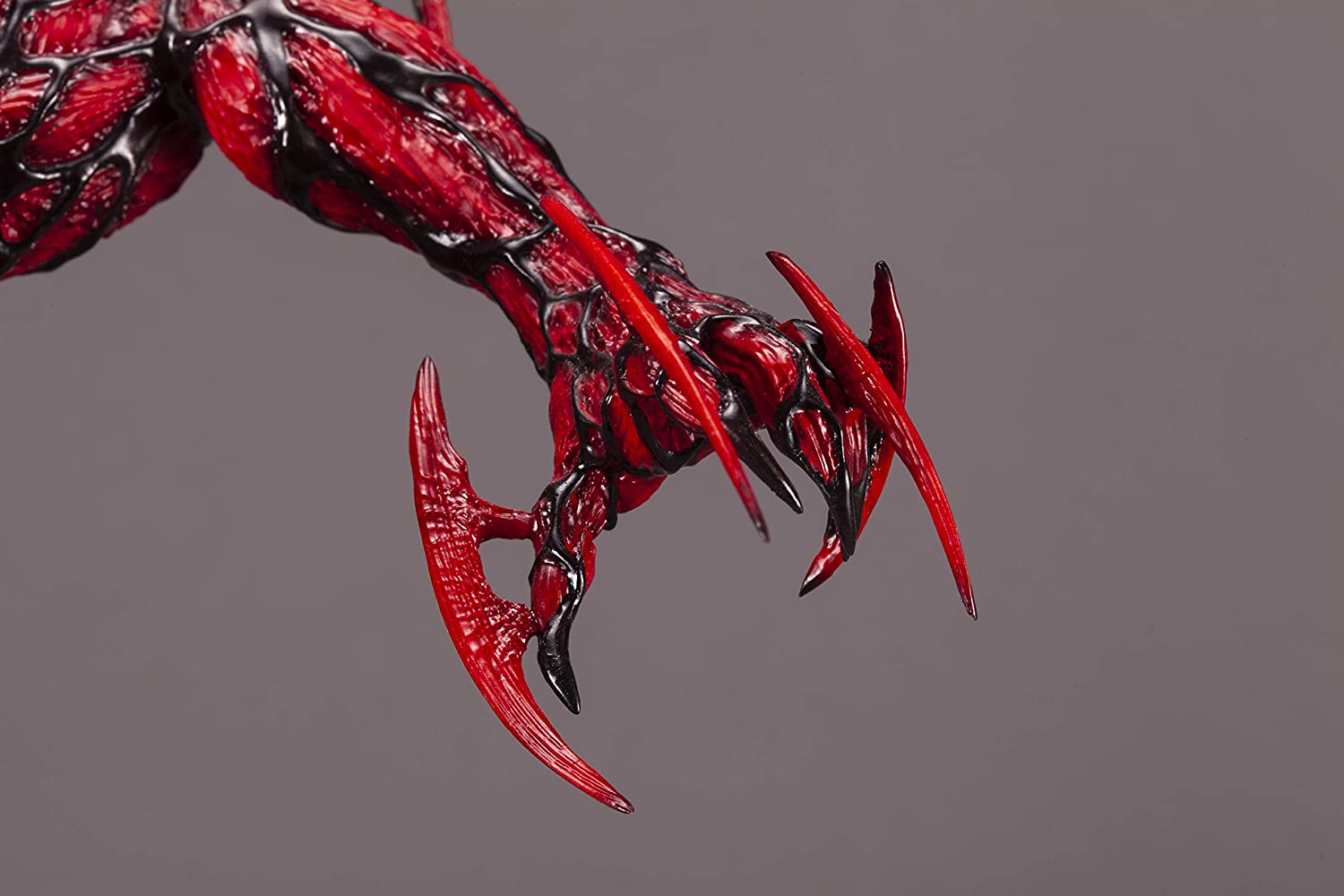 A deadly symbiotic attack from Carnage is fully recreated with the steel sharp tendrils emerging from its body. These five tendrils can be exchanged with normal symbiote tendrils included with this statue to recreate other various looks and poses.