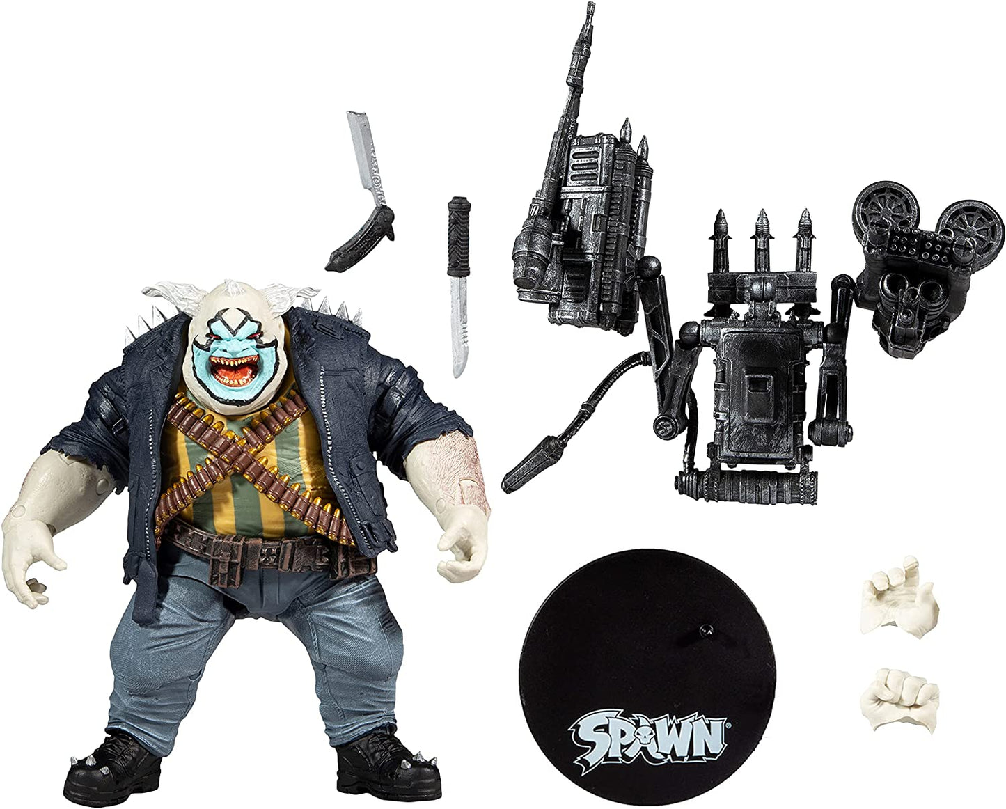 - The Clown includes a knife, razor blade, backpack rocket lancher with two machine guns, and base