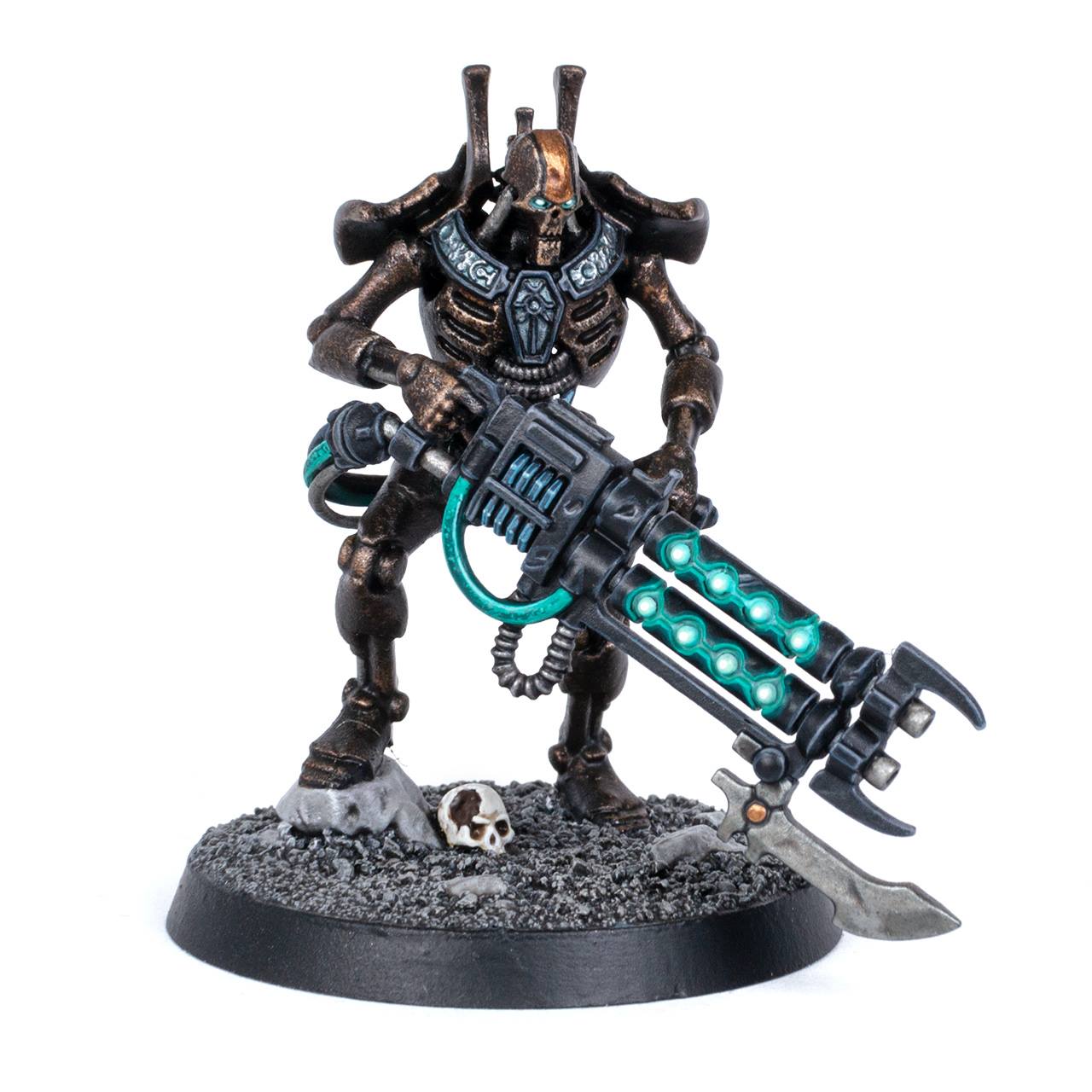 This multipart plastic kit builds a Royal Warden, an adjutant and enforcer for the greater Necron nobility. The Warden is armed with a sophisticated gauss blaster, more powerful than those wielded by his Immortal comrades, and posed striding