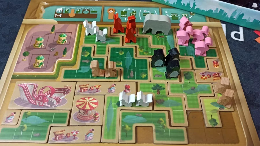 Puzzling and animal breeding: Designer Uwe Rosenberg is at his best! In New York Zoo, you are constructing an animal park. Build animal enclosures, introduce new animals and raise their offspring. The game play is straight forward as you have only two turn options: Puzzle a new enclosure tile into your zoo area or gain new animals to populate your animal encounters. But be sure to time your actions well since you want your zoo to participate in as many animal breedings as possible.