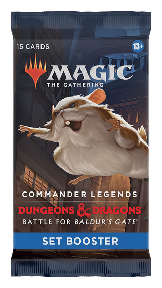 Commander Legends meets D&D in this exciting crossover set! Each Commander Legends: Battle for Baldur’s Gate Set Booster contains 15 Magic cards, 1 Art Card, and 1 token, ad card, or card from “The List” (a special card from Magic's history—found in 25% of packs).