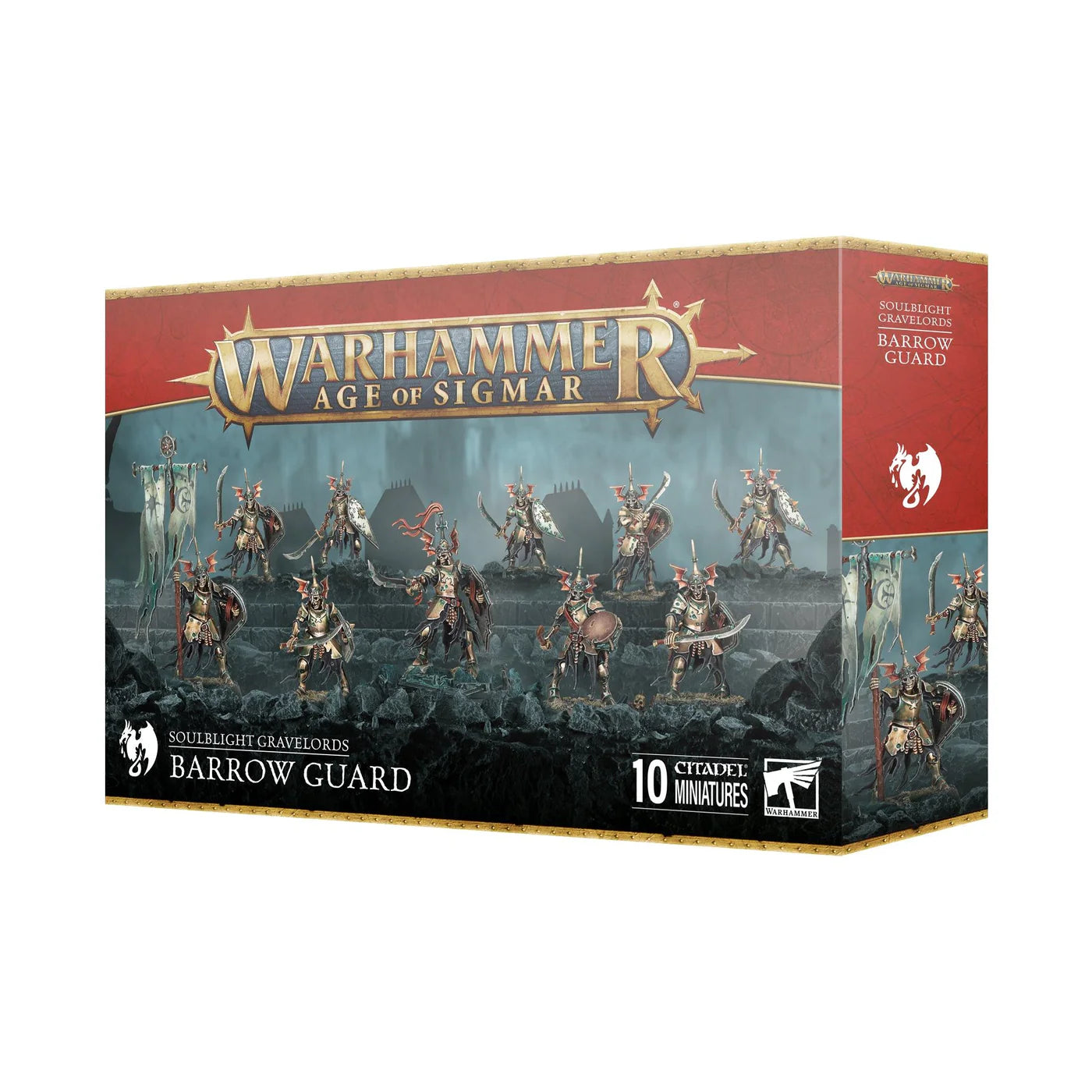 This multipart plastic kit builds five Barrow Knights, a Deathrattle cavalry unit for your Soulblight Gravelords armies in games of Warhammer Age of Sigmar. Mounted on skeletal steeds, they are armed with lances and equipped with shields. These fast, flexible warriors are excellent harassment units, or line-breakers in larger numbers.