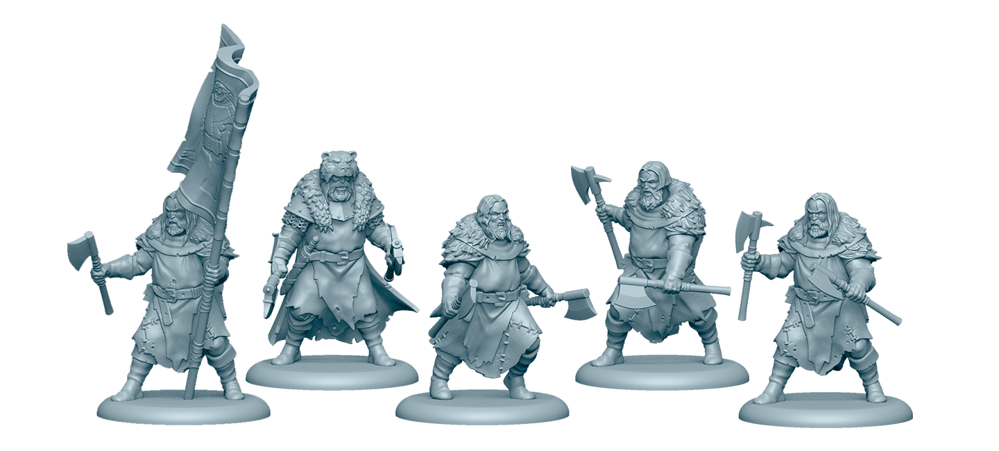 The Umber Berserkers Unit Box for the A Song of Ice and Fire: Tabletop Miniatures Game gives Stark Commanders a new unit to add to their ranks. Melee specialists, they’re one of the few units in the game that gain attack dice as they take casualties. And enemies certainly don’t want to be hit, as the unit’s Sundering ability means Defense Saves are harder to pass. Adding in the Umber Champion only increases their effectiveness in combat.